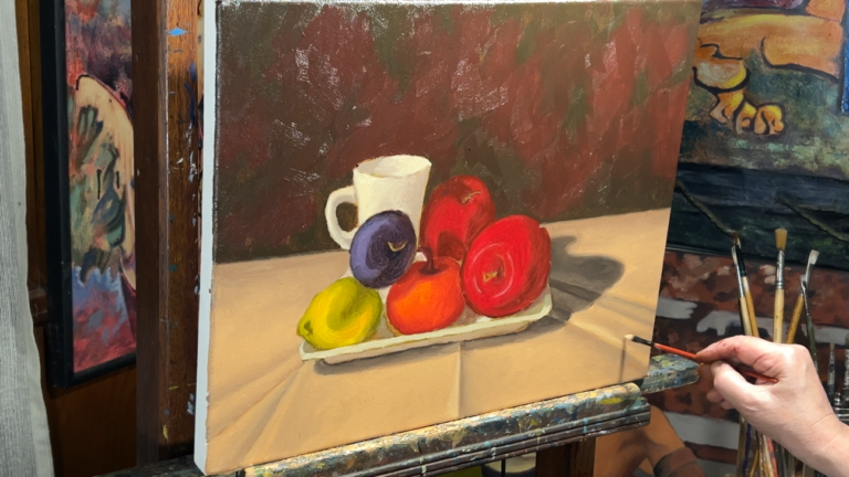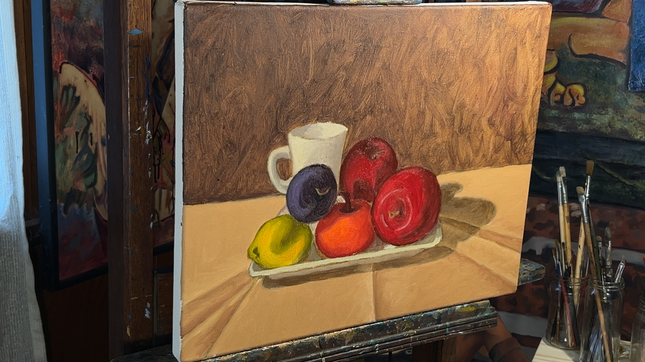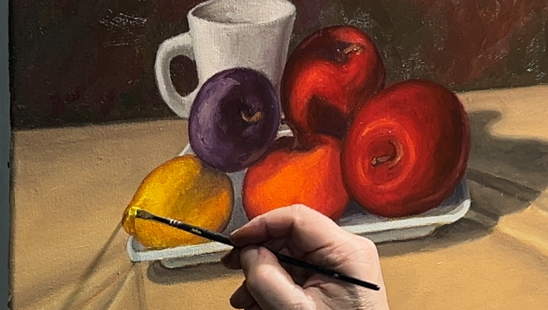Al finalizar, habrás realizado tu primer cuadro al óleo de naturaleza muerta, aplicando las técnicas esenciales para crear obras expresivas y con buen manejo de luz, color y volumen.